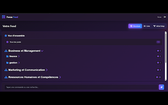 FocusFeed, LinkedIn'de kaydedilen gönderilerinizi organize etmenizi sağlayan bir Chrome eklentisidir. Bu araç, favorilerinizi otomatik olarak belirli alanlar, alt alanlar ve temalar bazında sıralar. Ayrıca, anahtar kelime araması ile içeriklerinizi hızlıca bulmanıza olanak tanır. Görsel bir zihin haritası ile gezinme ve özelleştirilebilir bir kontrol paneli sunarak kullanıcı deneyimini geliştirir.